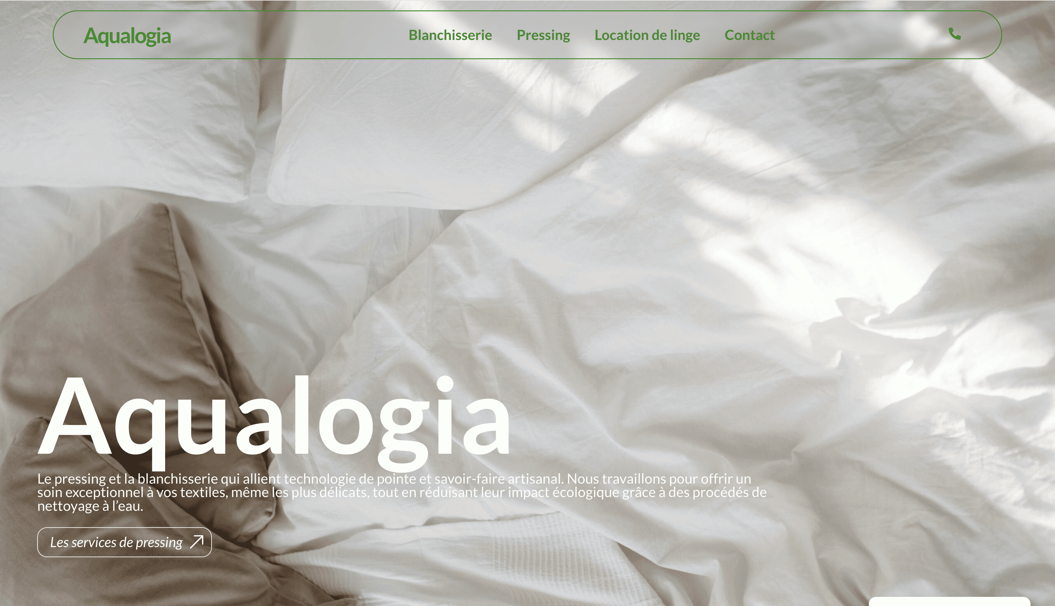 Déjà bien implanté à Lacanau, le pressing Aqualogia souhaitait se doter d’un site vitrine clair et accessible, capable de présenter l’ensemble de ses prestations. Le projet avait pour objectif de faciliter l’accès aux services, aux tarifs et aux informations pratiques, tout en intégrant un formulaire de contact afin d’offrir aux clients un point de contact simple et direct, complémentaire aux échanges existants sur les réseaux sociaux.